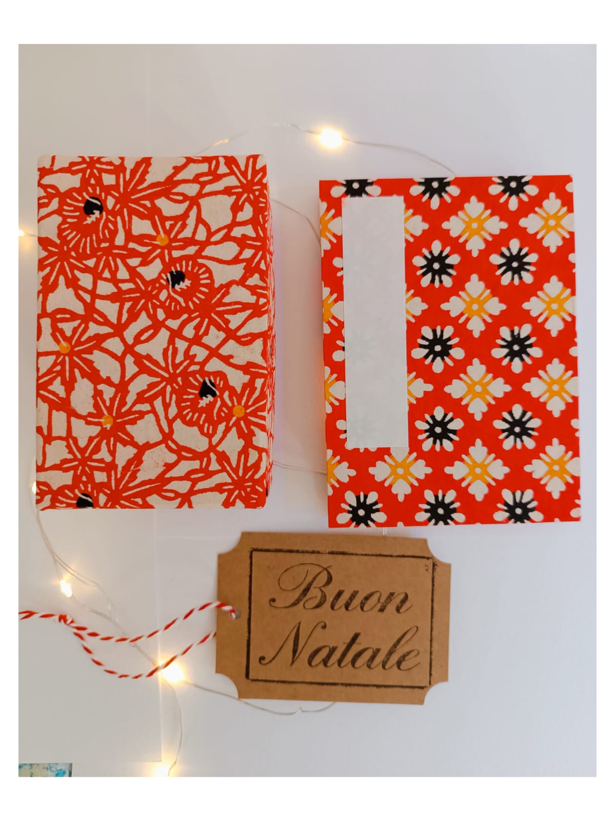Scatolina porta-biglietti da visita realizzata con carta washi giapponese stampata a mano con un elegante motivo floreale rosso.