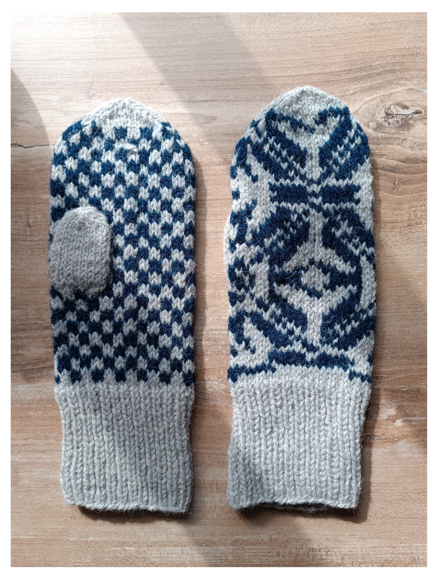 Guanti lituani lavorati a mano blu e grigi